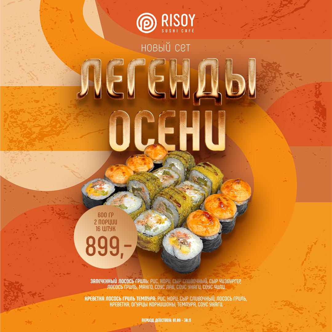 нори, рис, помидор, сыр сливочный, соус чесночный,  мидии, инари, темпура, соус  унаги.